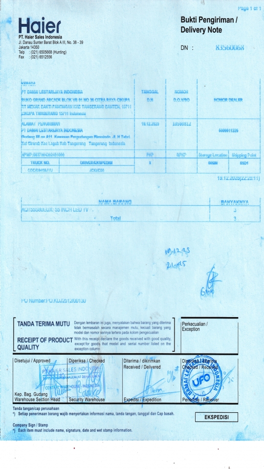 PT DAMAI LESTARIJAYA INDONESIA Gudang 88 no A11. Kawasan Pergudangan Blessindo. Jl. H Tabri. Kel Cirarab Kec Legok Kab Tangerang Tangerang ID |