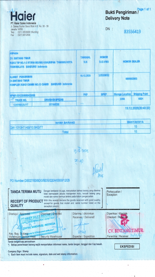 | Berangkat, Tiba, Bongkar | 2025-12-20, 2025-12-20, 2025-12-20 |