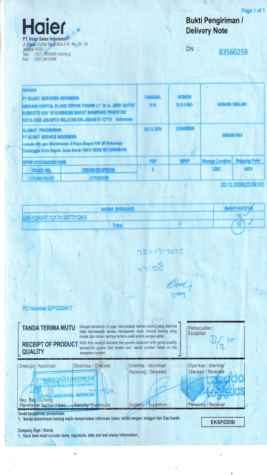 Customer PT. HAIER SALES INDONESIA