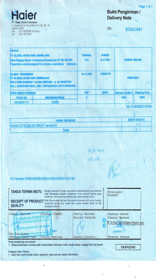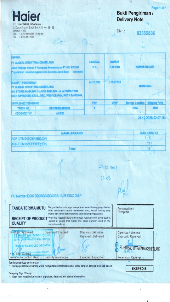 PT GLOBAL MITRATAMA CEMERLANG AIO STORE BANDUNG 2 UJUNG BERUNG - JL AH NASUTION NO.2, CIPADDUNG KIDUL, KEC. PANYILEUKAN, KOTA BANDUNG, JAWA BARAT, 40615 BANDUNG 40615 ID |