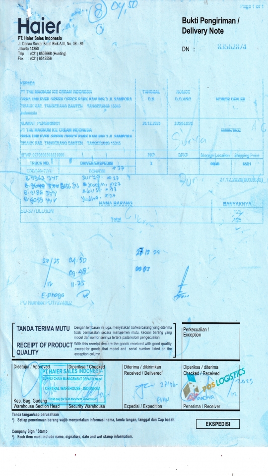PT Pos Logistik Indonesia - Gudang Cakung Komplek Pergudangan Central Cakung Blok J2 No. 1-14, RT.1/RW.10, Rorotan, Kec. Cilincing, Jkt Utara, Daerah Khusus Ibukota Jakarta 14140 PIC : CHANDRA 0823-7329-1364 |