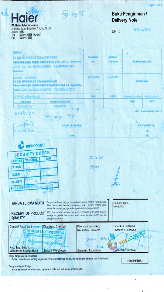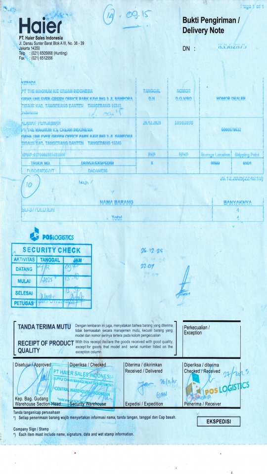 PT Pos Logistik Indonesia - Gudang Cakung Komplek Pergudangan Central Cakung Blok J2 No. 1-14, RT.1/RW.10, Rorotan, Kec. Cilincing, Jkt Utara, Daerah Khusus Ibukota Jakarta 14140 PIC : CHANDRA 0823-7329-1364 |