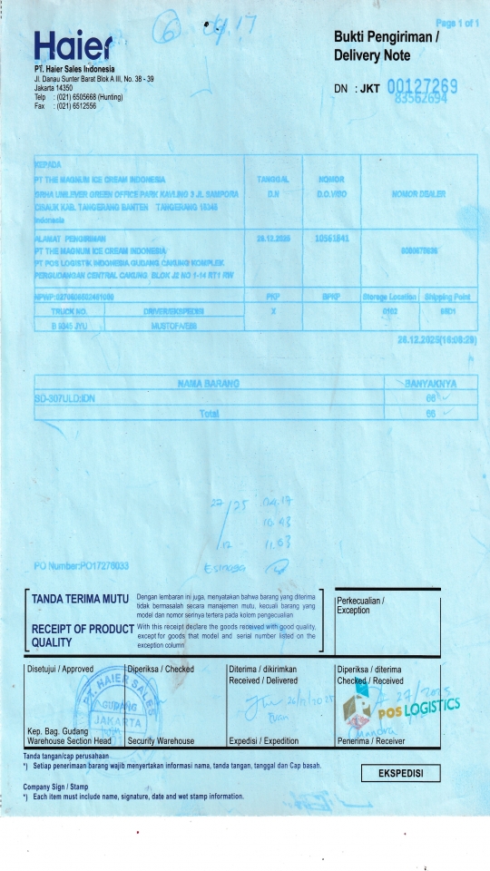 PT. Poslog (Gudang Unilever) Komplek Pergudangan Central Cakung Blok J2 No. 1-14, RT.1/RW.10, Rorotan Kec. Cilincing, Kota Jkt Utara, Daerah Khusus Ibukota Jakarta 14140 |