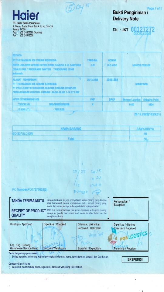 PT. Poslog (Gudang Unilever) Komplek Pergudangan Central Cakung Blok J2 No. 1-14, RT.1/RW.10, Rorotan Kec. Cilincing, Kota Jkt Utara, Daerah Khusus Ibukota Jakarta 14140 |