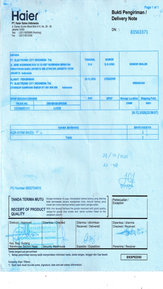PT. ELECTRONIC CITY INDONESIA Tbk CITEREUP KAMPUNG SABUR RT 001 RW 006 ID |