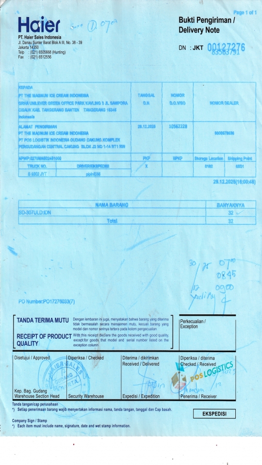 PT. Poslog (Gudang Unilever) Komplek Pergudangan Central Cakung Blok J2 No. 1-14, RT.1/RW.10, Rorotan Kec. Cilincing, Kota Jkt Utara, Daerah Khusus Ibukota Jakarta 14140 |