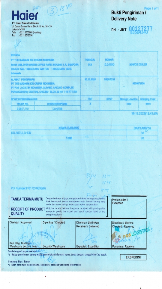 PT. Poslog (Gudang Unilever) Komplek Pergudangan Central Cakung Blok J2 No. 1-14, RT.1/RW.10, Rorotan Kec. Cilincing, Kota Jkt Utara, Daerah Khusus Ibukota Jakarta 14140 |