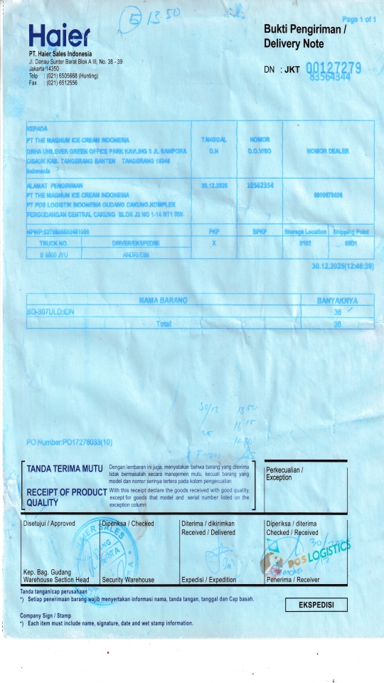 PT. Poslog (Gudang Unilever) Komplek Pergudangan Central Cakung Blok J2 No. 1-14, RT.1/RW.10, Rorotan Kec. Cilincing, Kota Jkt Utara, Daerah Khusus Ibukota Jakarta 14140 |