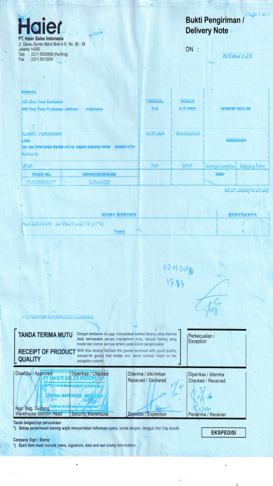 | Berangkat, Tiba, Bongkar | 2026-01-03, 2026-01-03, 2026-01-03 |