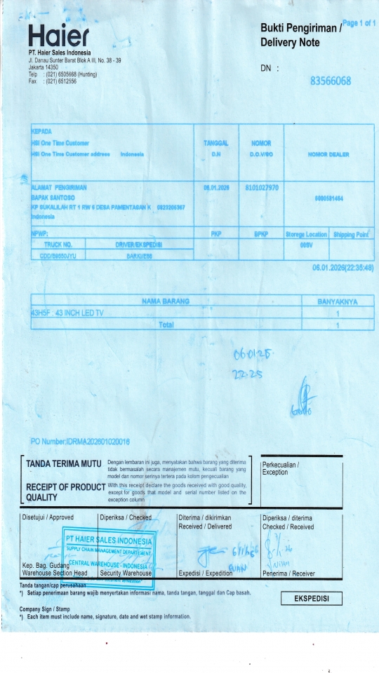 | Berangkat, Tiba, Bongkar | 2026-01-07, 2026-01-07, 2026-01-07 |