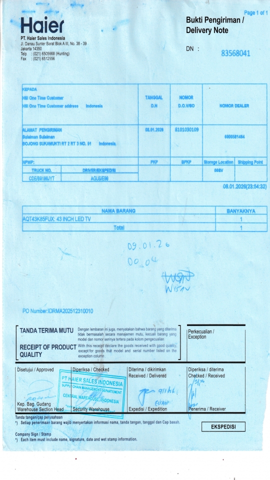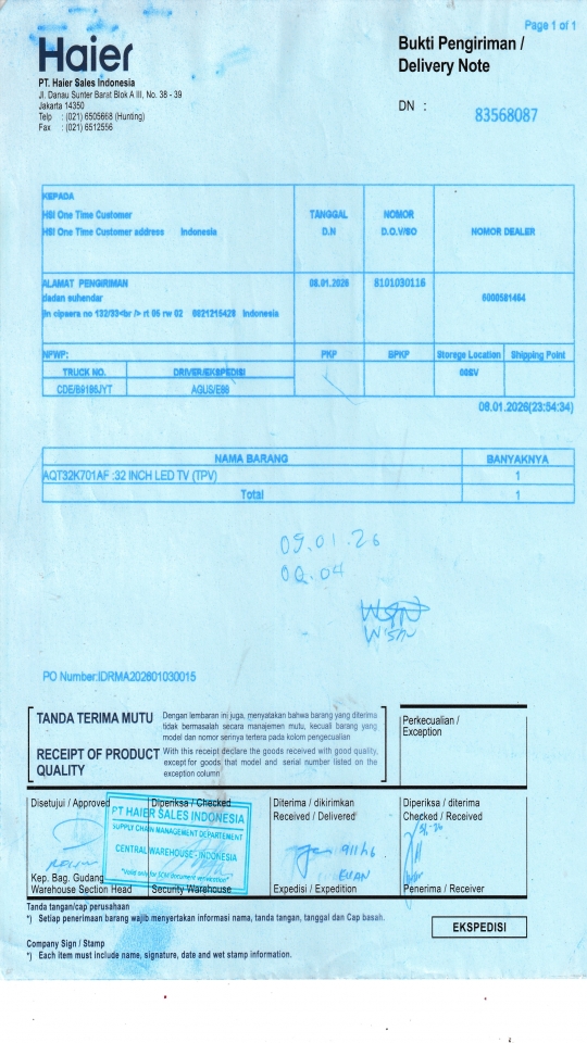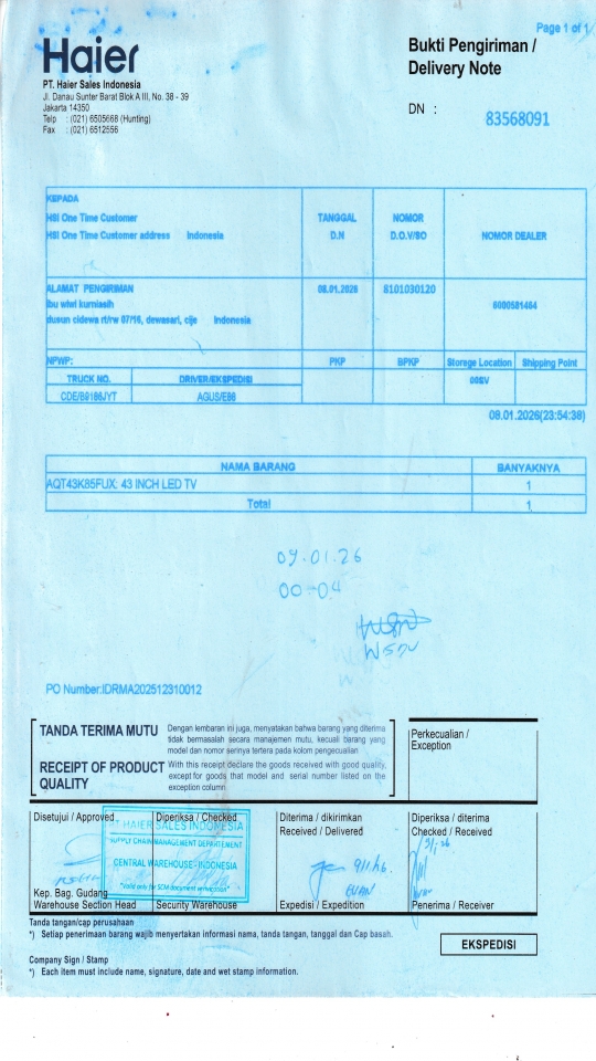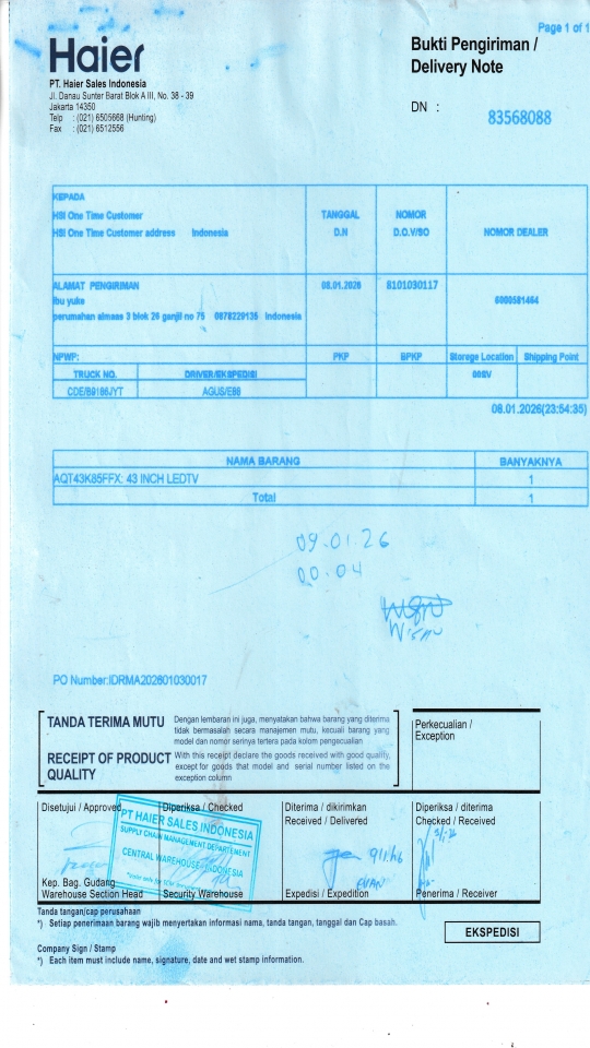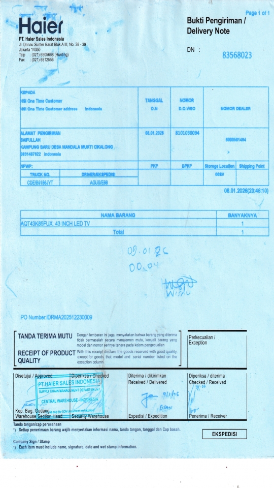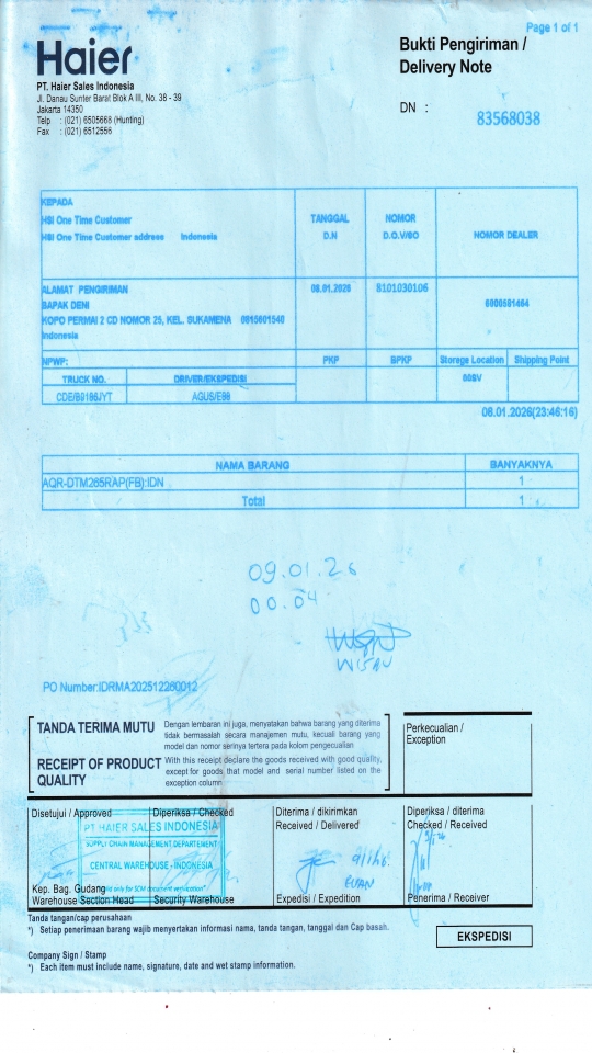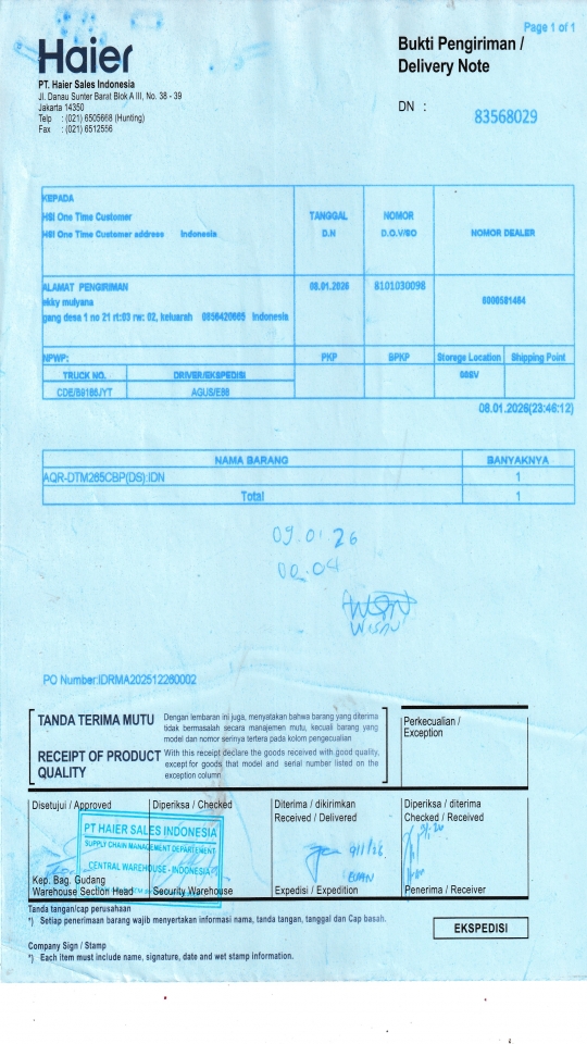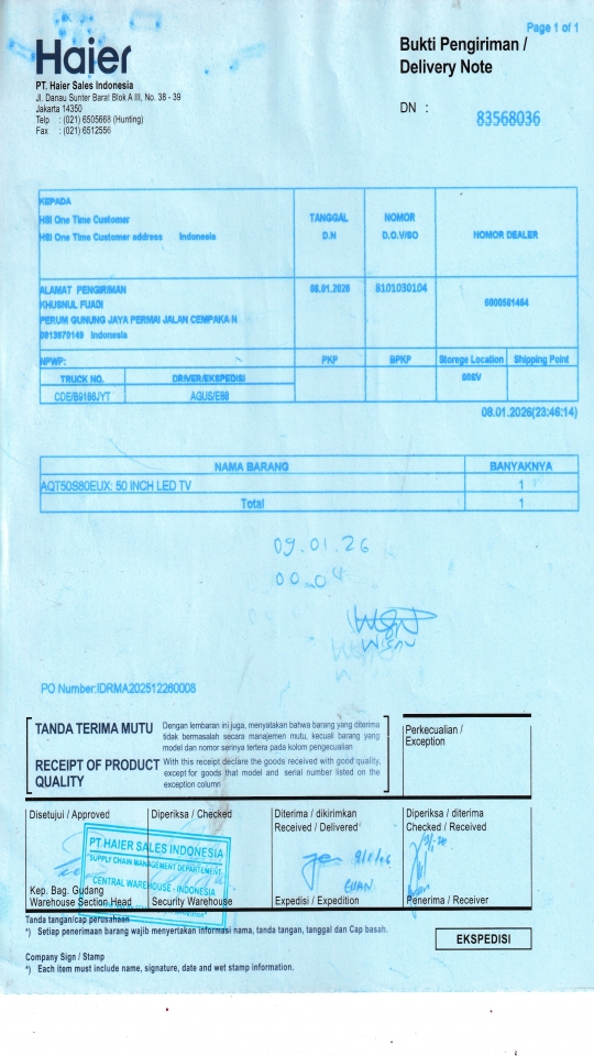 | Customer | PT. HAIER SALES INDONESIA |