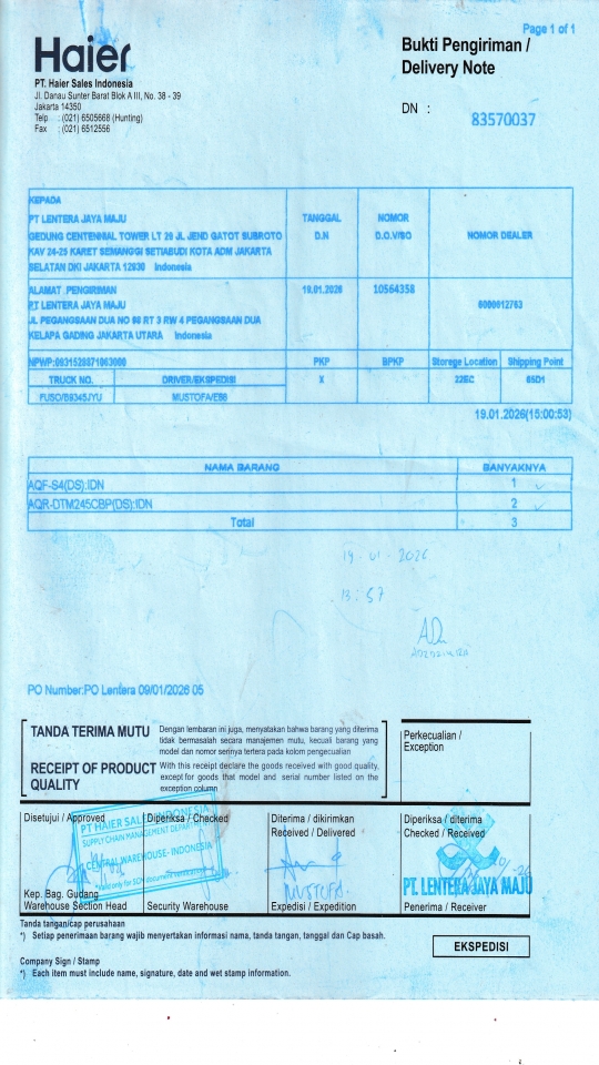 Berangkat, Tiba, Bongkar 2026-01-20, 2026-01-20, 2026-01-20