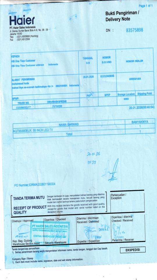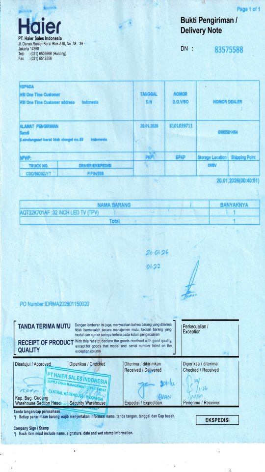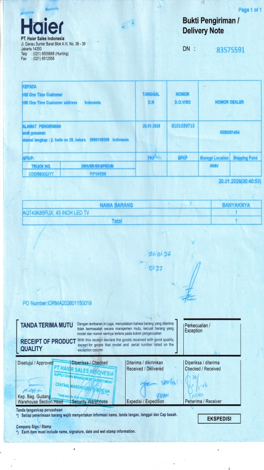 | Berangkat, Tiba, Bongkar | 2026-01-20, 2026-01-20, 2026-01-20 |