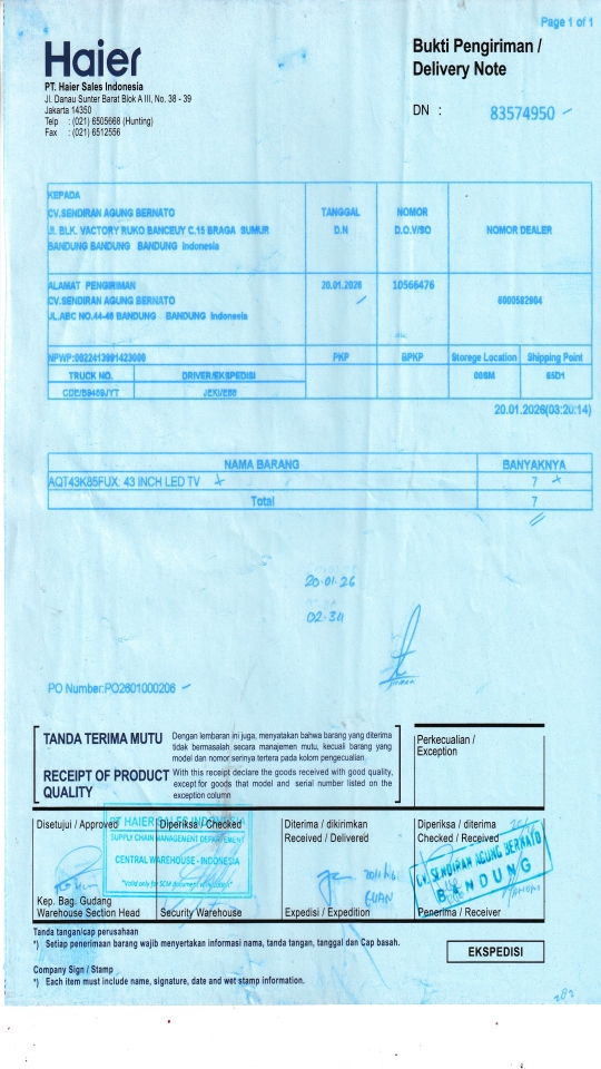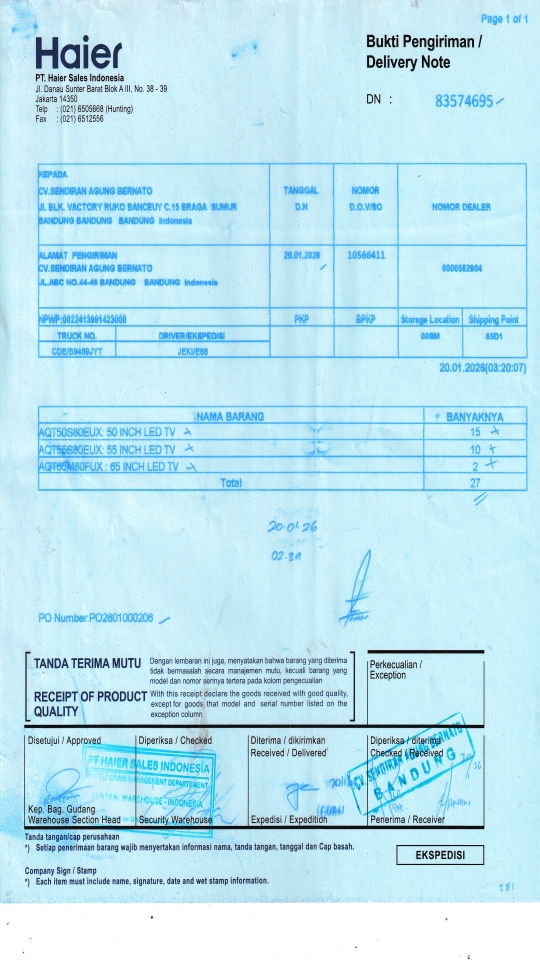 | Customer | PT. HAIER SALES INDONESIA |