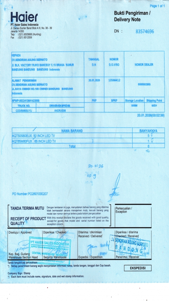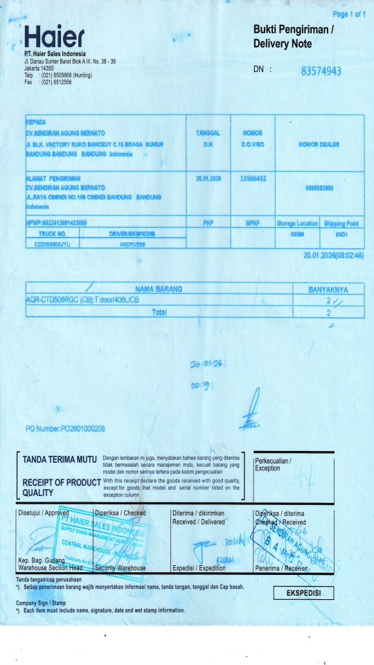 | Penerima | CV.SENDIRAN AGUNG BERNATO |