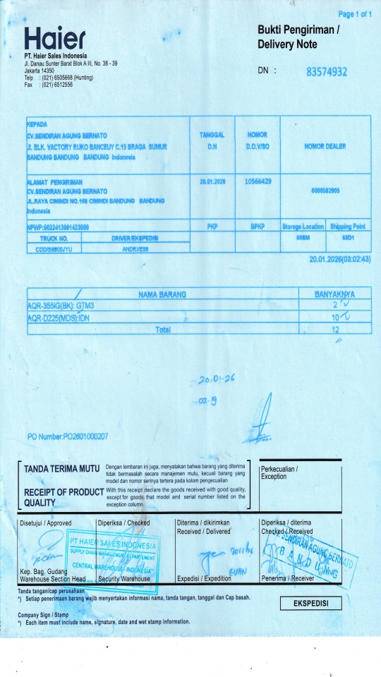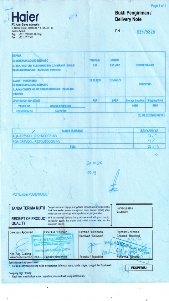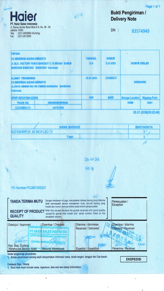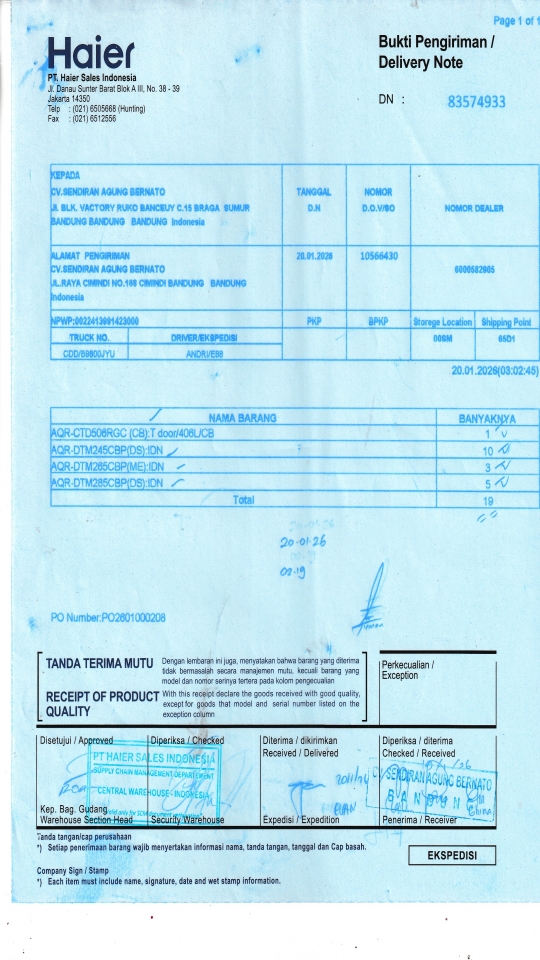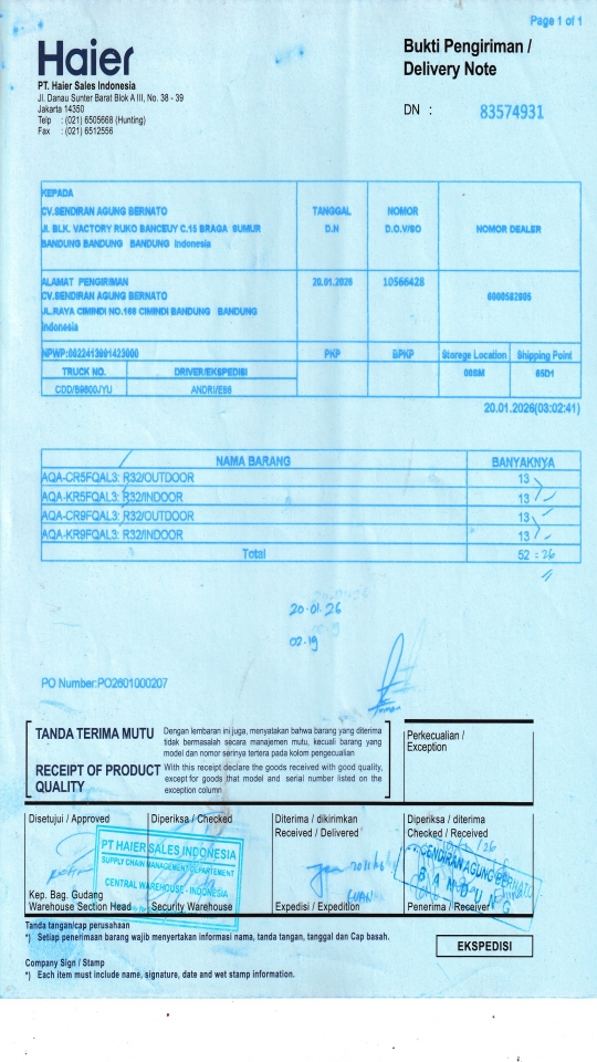 | Berangkat, Tiba, Bongkar | 2026-01-20, 2026-01-20, 2026-01-20 |