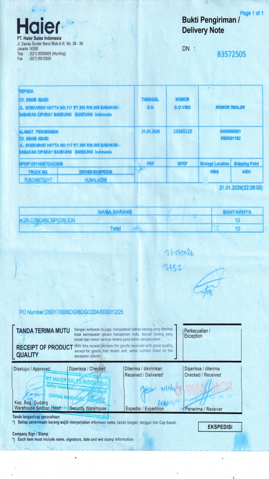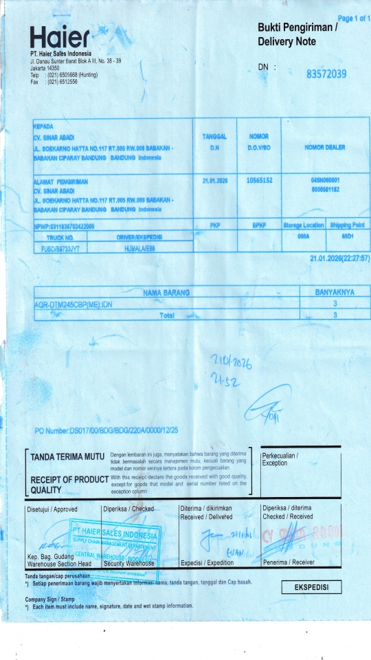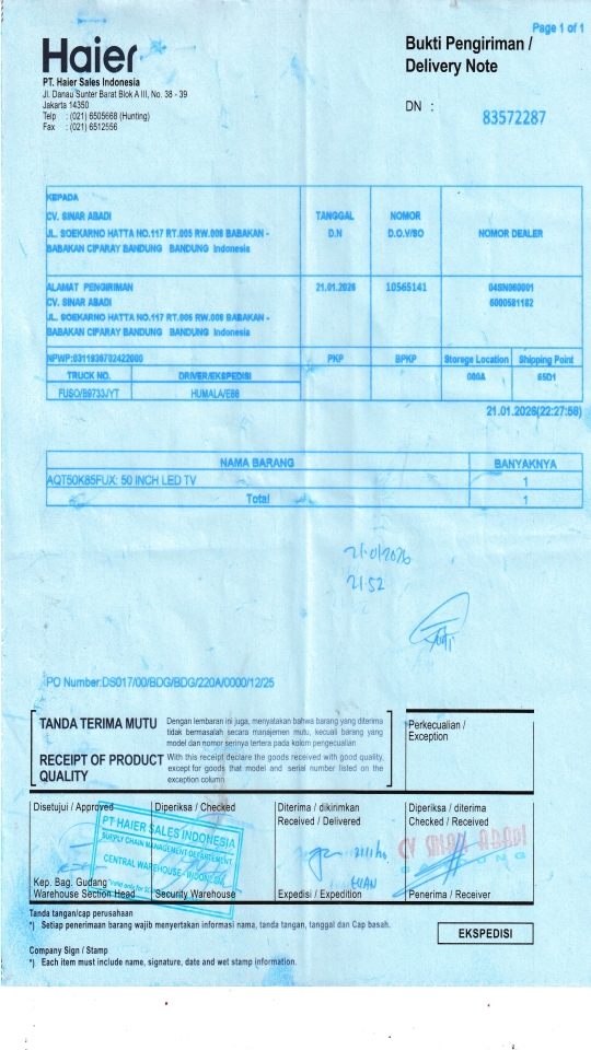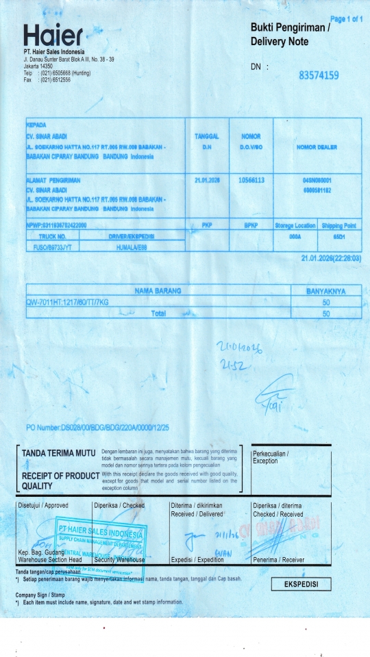 Berangkat, Tiba, Bongkar 2026-01-22, 2026-01-22, 2026-01-22