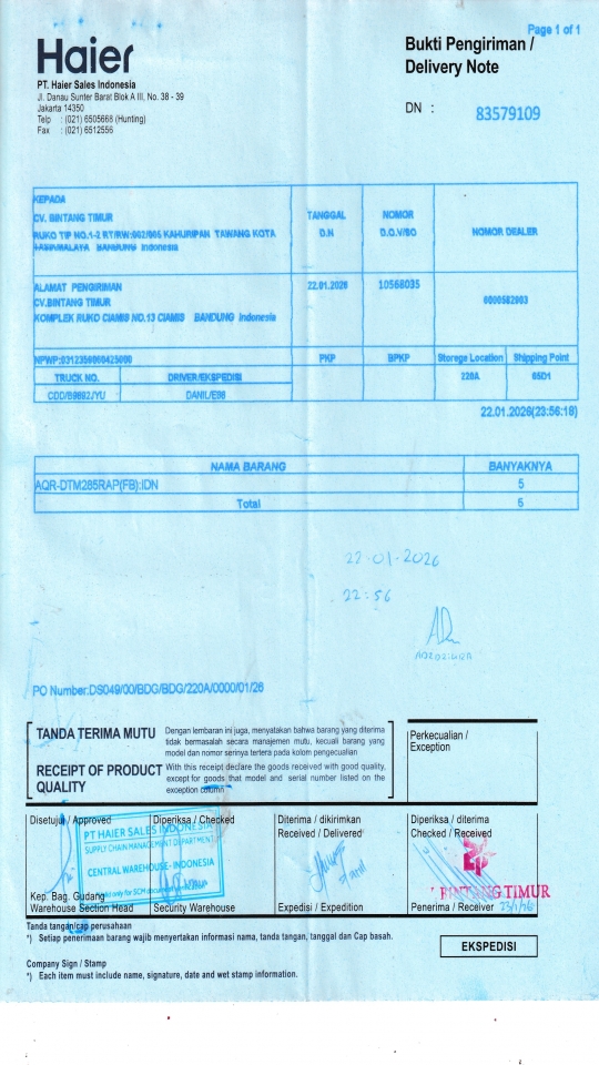 | Berangkat, Tiba, Bongkar | 2026-01-23, 2026-01-23, 2026-01-23 |