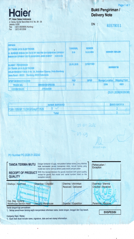 Customer PT. HAIER SALES INDONESIA