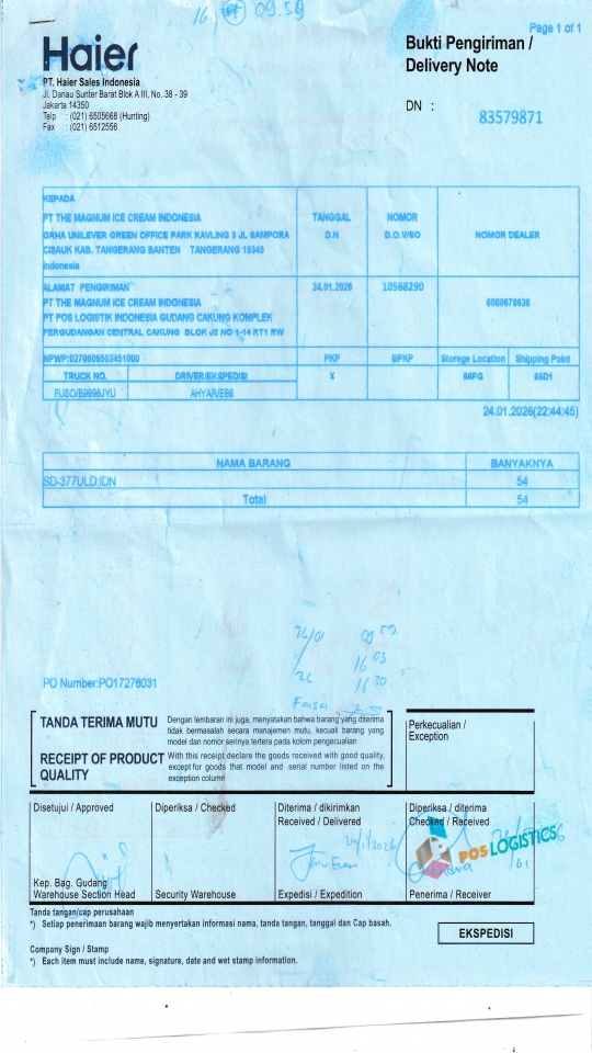 PT THE MAGNUM ICE CREAM INDONESIA PT POS LOGISTIK INDONESIA GUDANG CAKUNG KOMPLEK PERGUDANGAN CENTRAL CAKUNG BLOK J2 NO 1-14 RT1 RW 10 ROROTAN, KEC CILINCING JAKARTA UTARA 14140 ID |