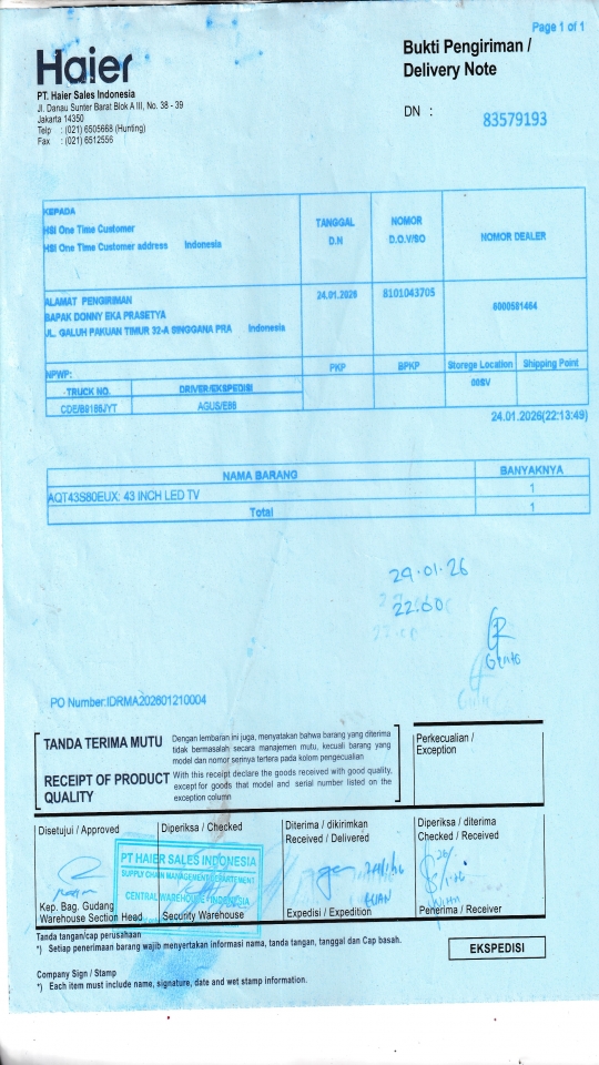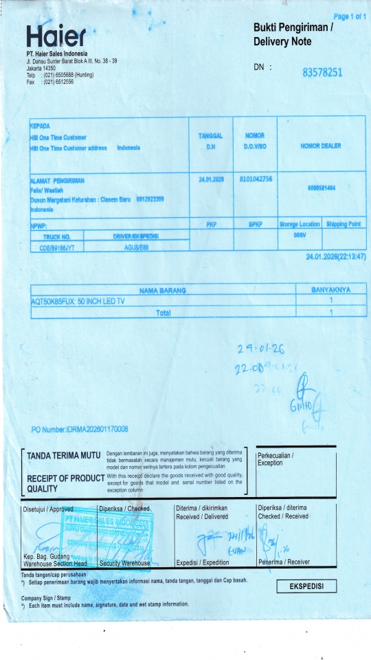 | Berangkat, Tiba, Bongkar | 2026-01-26, 2026-01-26, 2026-01-26 |