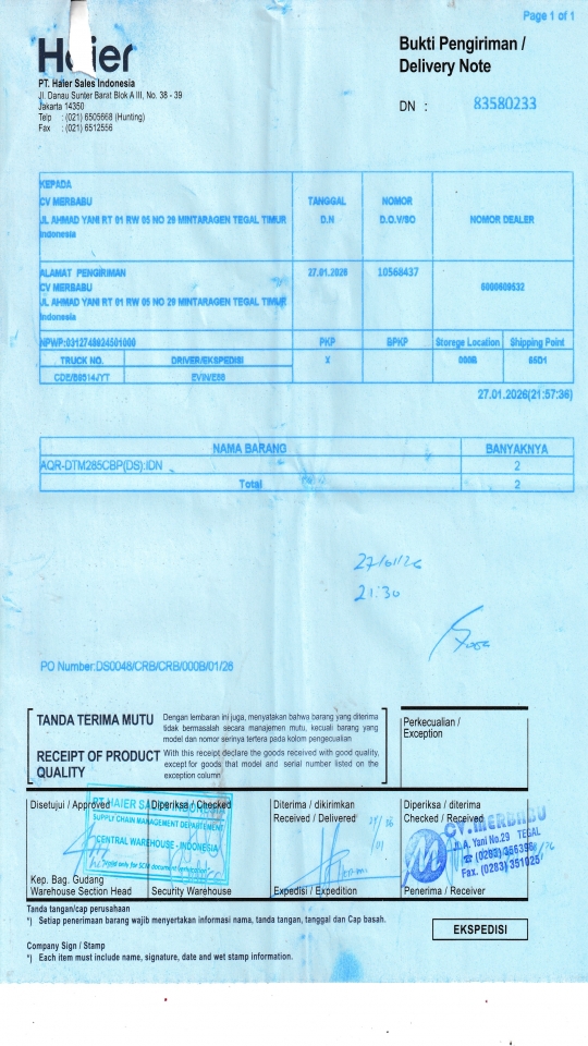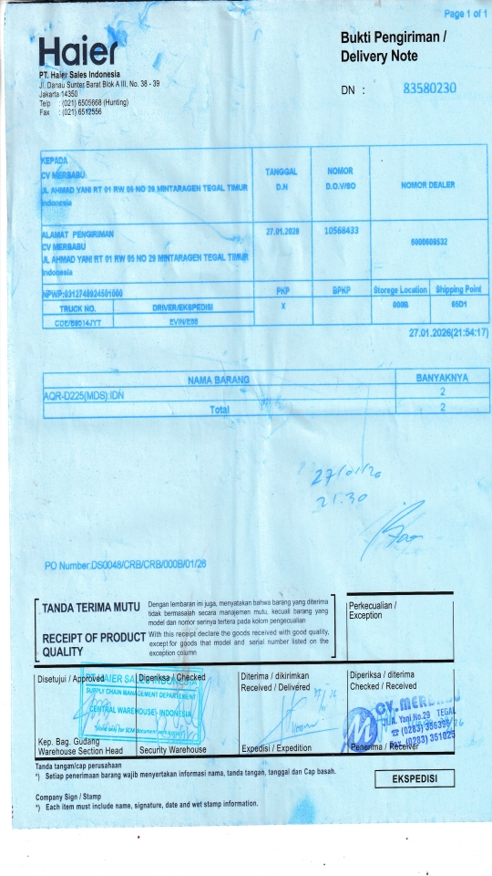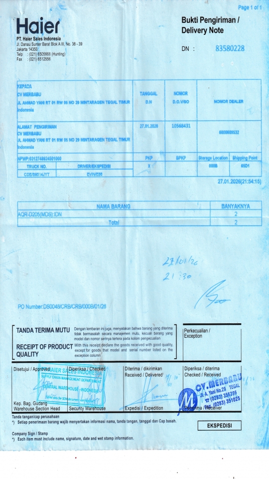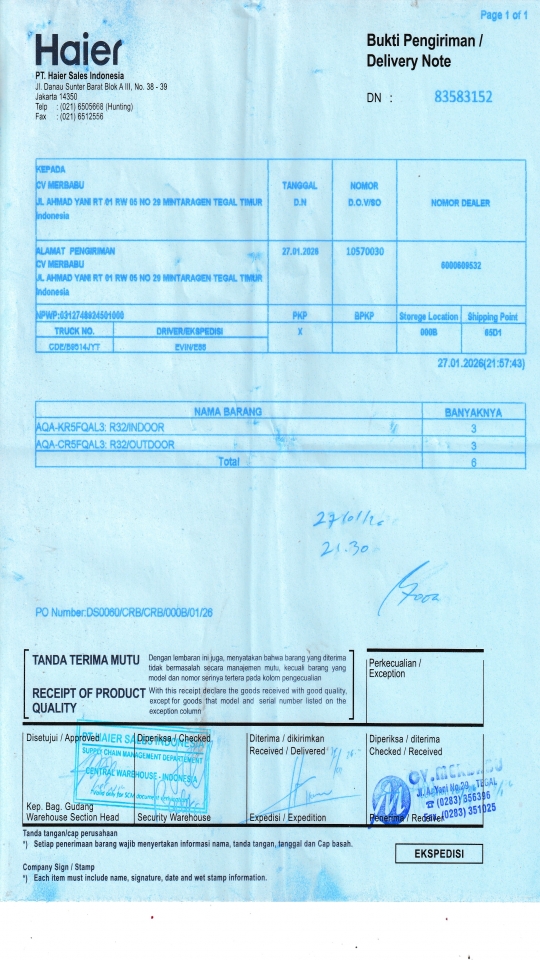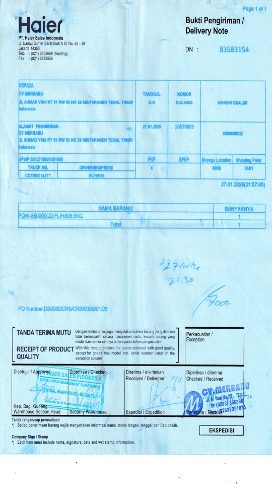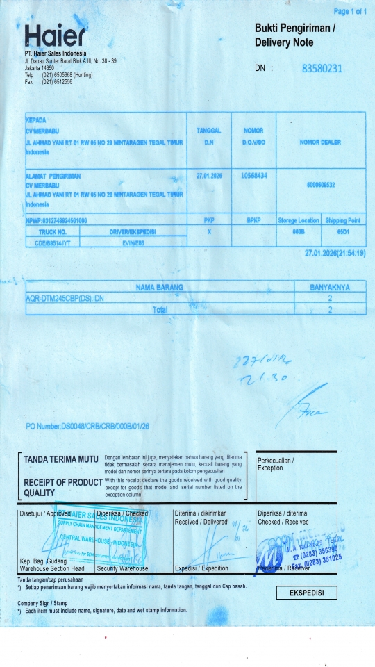 | Berangkat, Tiba, Bongkar | 2026-01-28, 2026-01-28, 2026-01-28 |