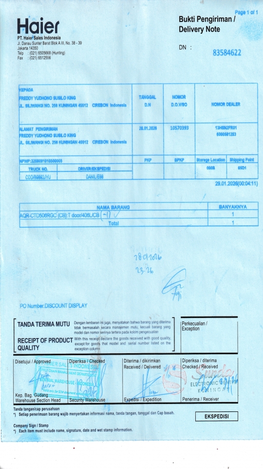 FREDDY YUDHONO SUSILO KING JL. SILIWANGI NO. 256 KUNINGAN 45512 CIREBON ID |