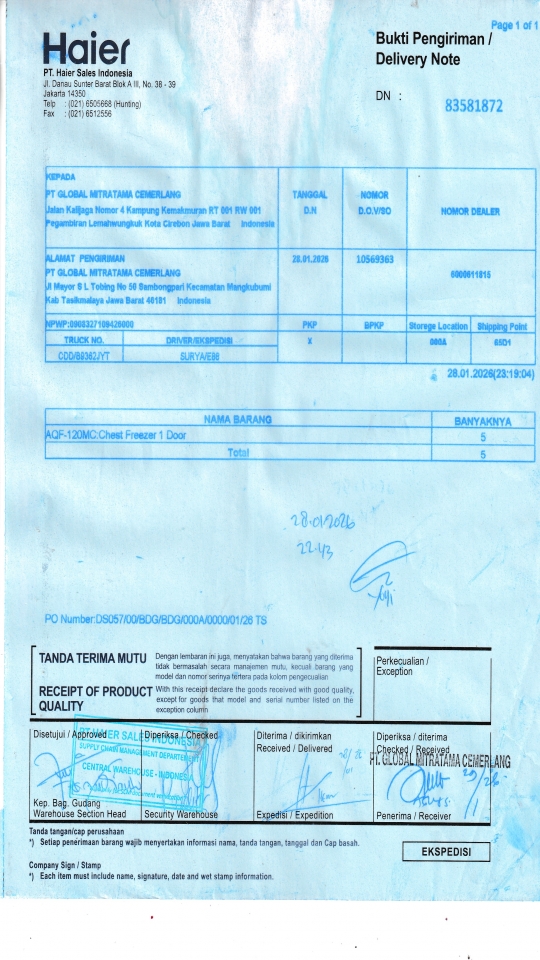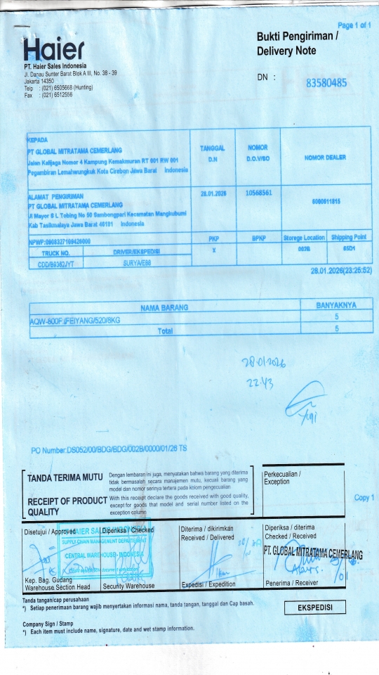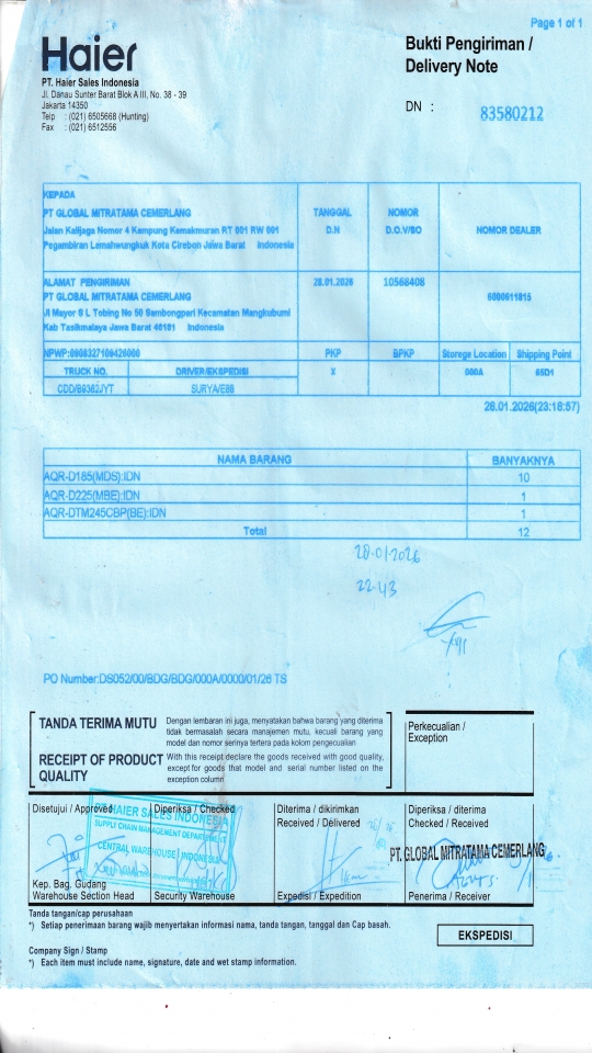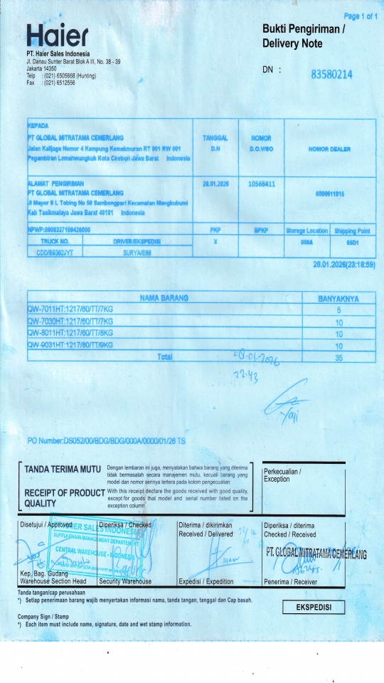 Penerima PT GLOBAL MITRATAMA CEMERLANG