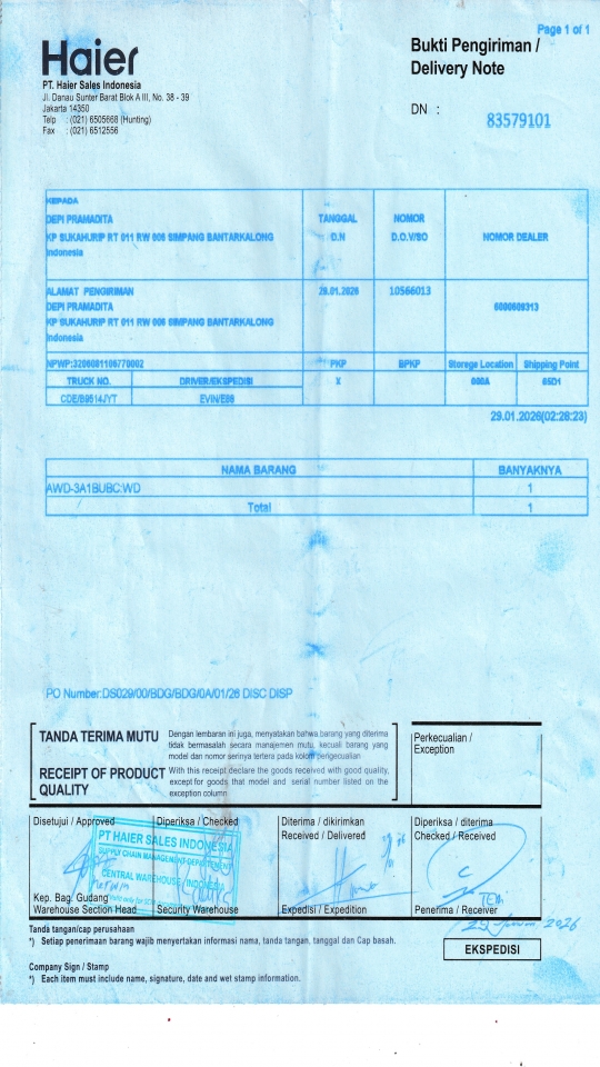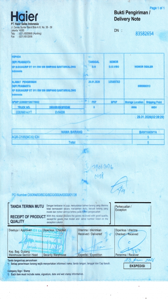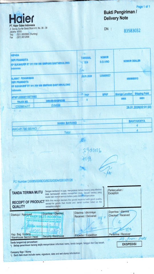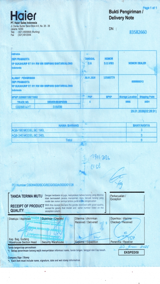 | Berangkat, Tiba, Bongkar | 2026-01-29, 2026-01-29, 2026-01-29 |