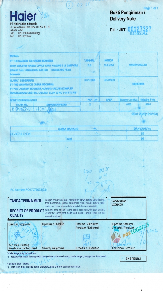 PT THE MAGNUM ICE CREAM INDONESIA PT POS LOGISTIK INDONESIA GUDANG CAKUNG KOMPLEK PERGUDANGAN CENTRAL CAKUNG BLOK J2 NO 1-14 RT1 RW 10 ROROTAN, KEC CILINCING JAKARTA UTARA 14140 ID |
