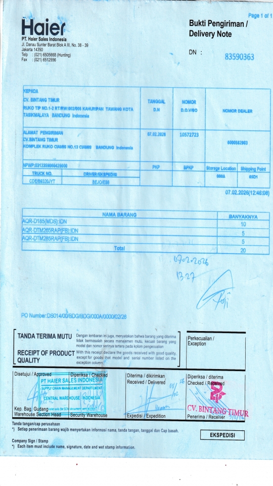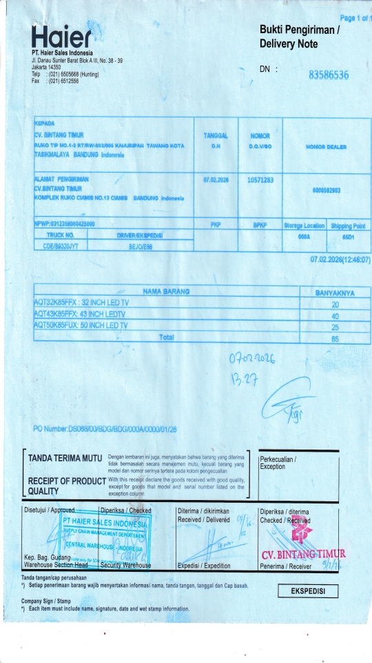| Customer | PT. HAIER SALES INDONESIA |