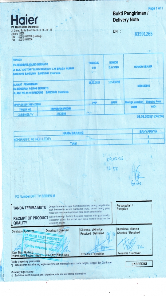| Berangkat, Tiba, Bongkar | 2026-02-10, 2026-02-10, 2026-02-10 |