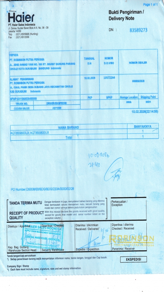 PT. ROBINSON PUTRA PERKASA JL. CIAUL PASIR DESA SUBANG JAYA KECAMATAN CIKOLE KAB SUKABUMI ID |