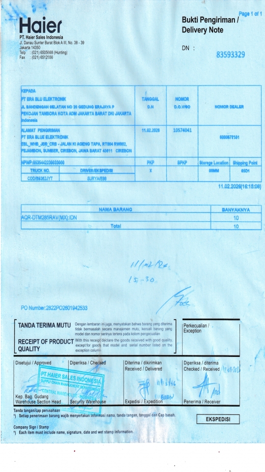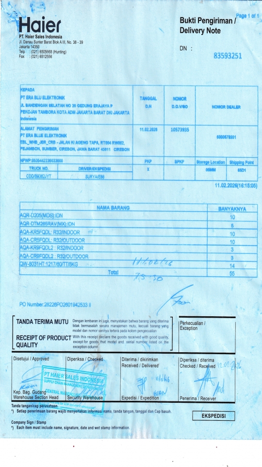 PT ERA BLUE ELEKTRONIK EBL_WHB_JBR_CRB - JALAN KI AGENG TAPA, RT004 RW002, PEJAMBON, SUMBER, CIREBON, JAWA BARAT 45611 CIREBON 45611 ID |