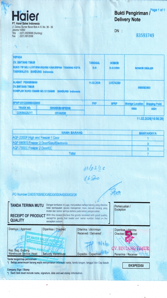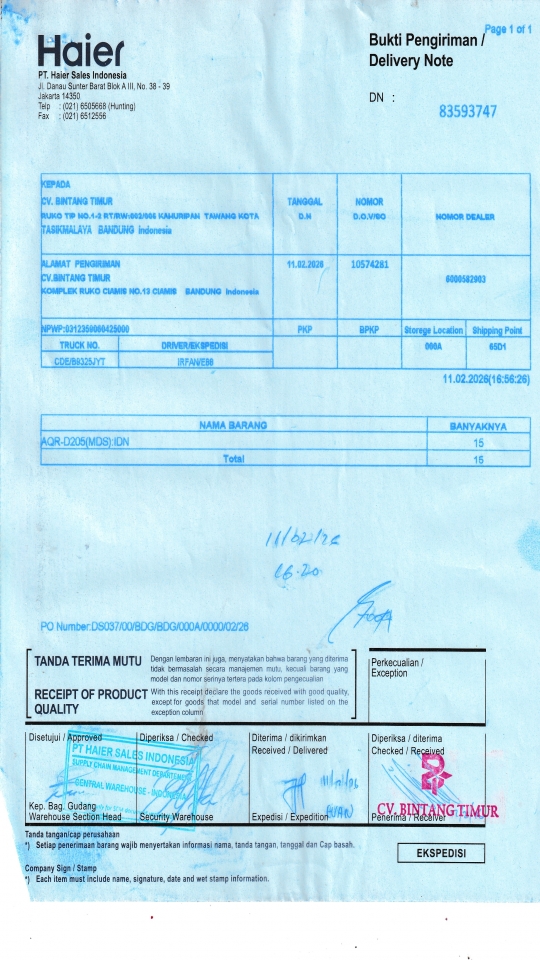 | Customer | PT. HAIER SALES INDONESIA |