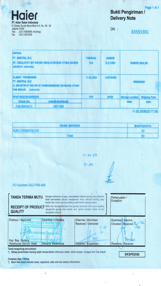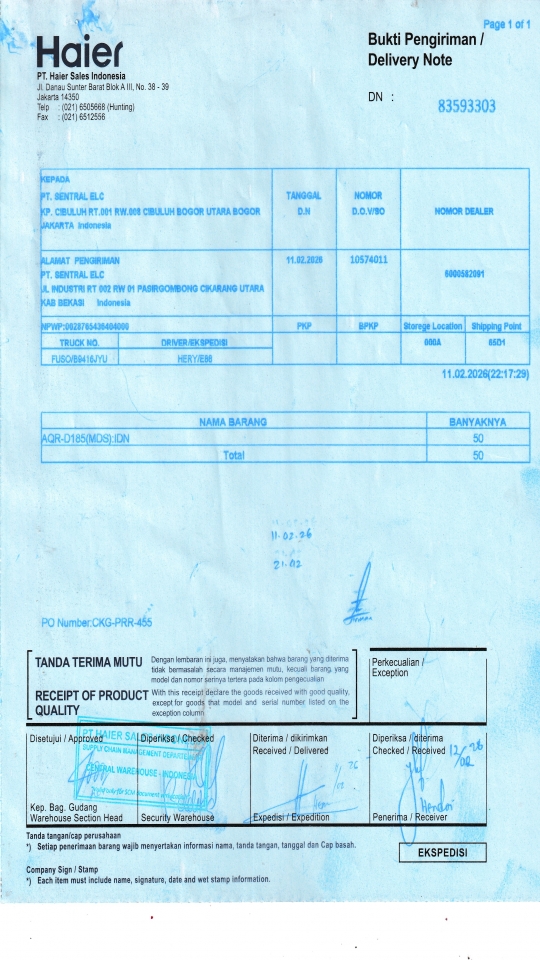 | Berangkat, Tiba, Bongkar | 2026-02-12, 2026-02-12, 2026-02-12 |
