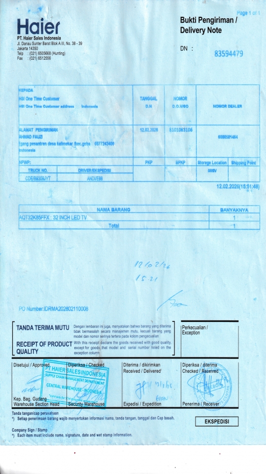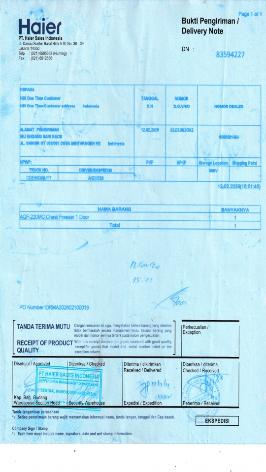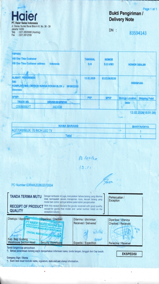 | Customer | PT. HAIER SALES INDONESIA |