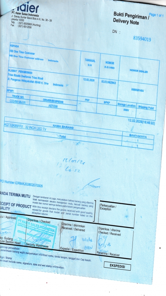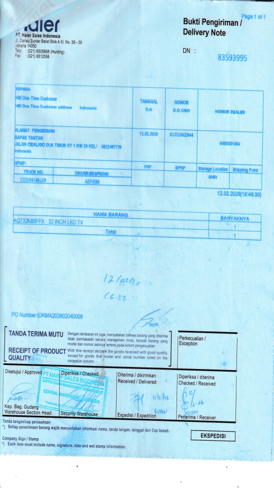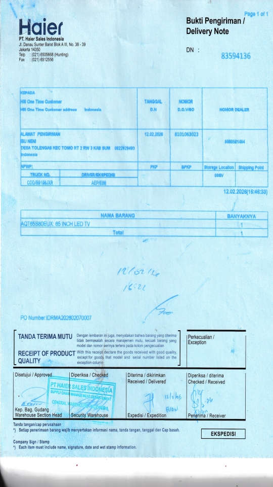 | Customer | PT. HAIER SALES INDONESIA |