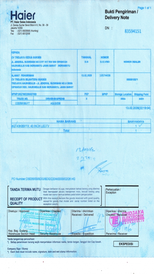 CV TRIDJAYA SEJAHTERA SUKSES TRIDJAYA HAURGEULIS - JL JENDRAL SUDIRMAN NO.8 DESA CIPANCUH KEC. HAURGEULIS KAB INDRAMAYU, JAWA BARAT Indramayu 45264 ID |