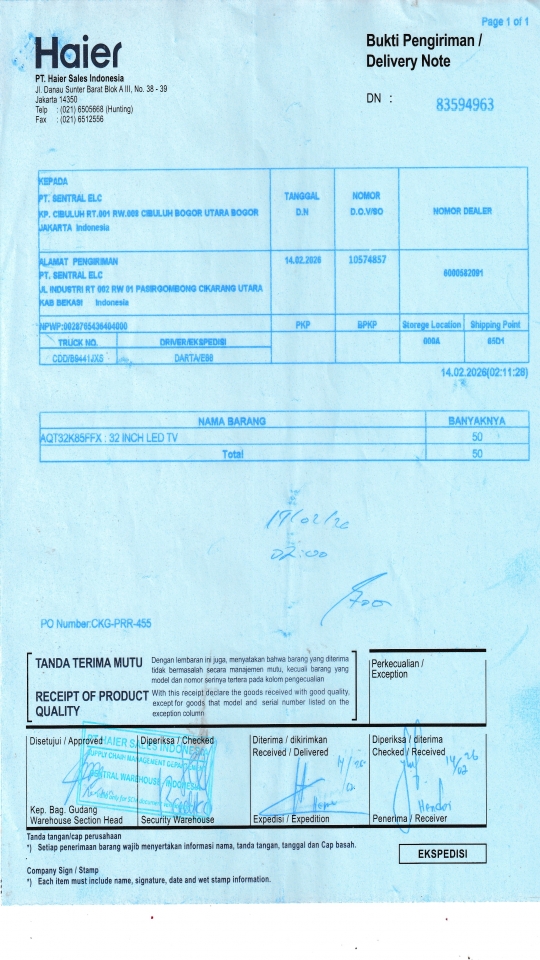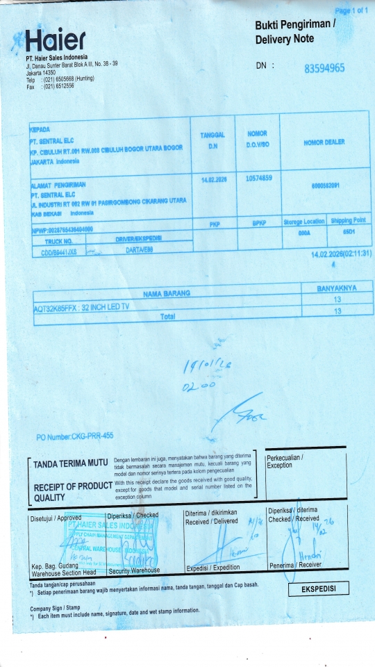 | Customer | PT. HAIER SALES INDONESIA |