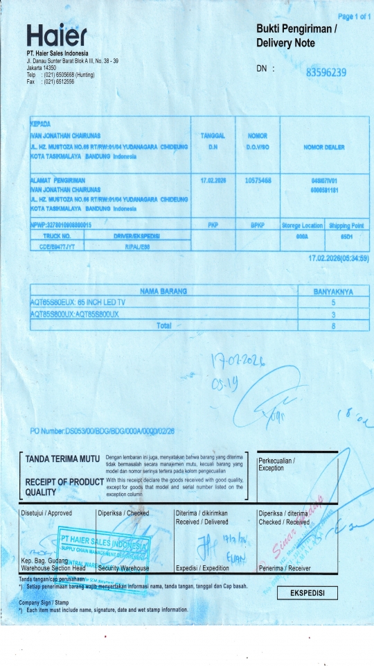 IVAN JONATHAN CHAIRUNAS JL. HZ. MUSTOZA NO.66 RT/RW:01/04 YUDANAGARA CIHIDEUNG KOTA TASIKMALAYA BANDUNG ID |