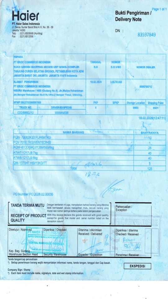 PT EROC COMMERCE INDONESIA NISURA Warehouse / NSS (Gudang No.4), Jln.Madya Kebantenan Jln.Semper Kebantenan No.8 Rt.1/Rw.2 Semper Timur, Cilincing, JAKARTA 14130 ID |