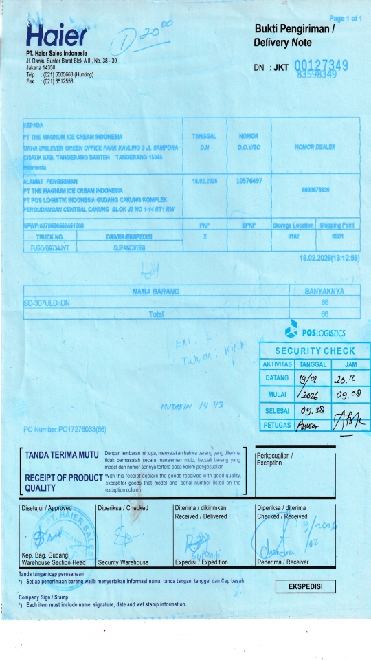 PT THE MAGNUM ICE CREAM INDONESIA PT POS LOGISTIK INDONESIA GUDANG CAKUNG KOMPLEK PERGUDANGAN CENTRAL CAKUNG BLOK J2 NO 1-14 RT1 RW 10 ROROTAN, KEC CILINCING JAKARTA UTARA 14140 ID |