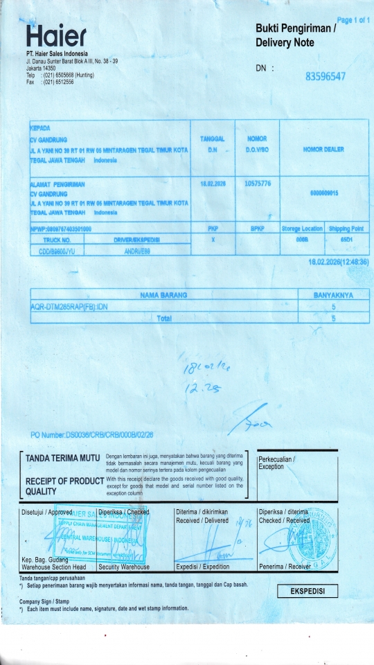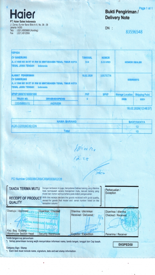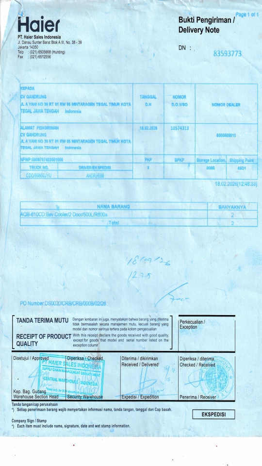| Customer | PT. HAIER SALES INDONESIA |