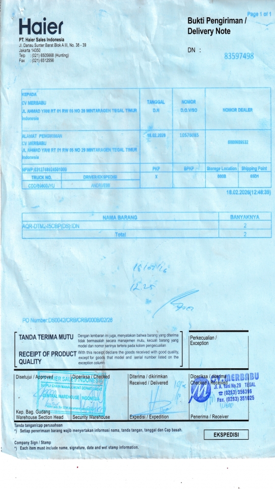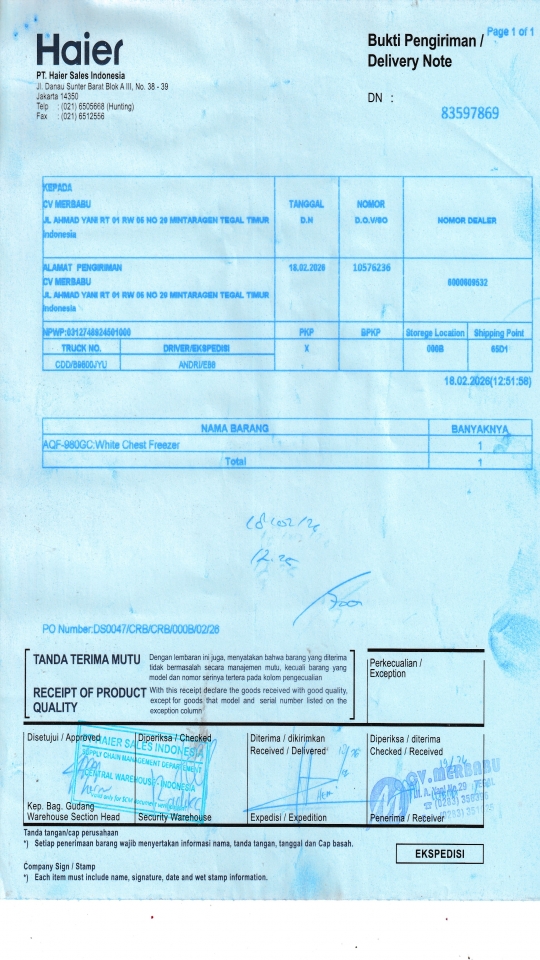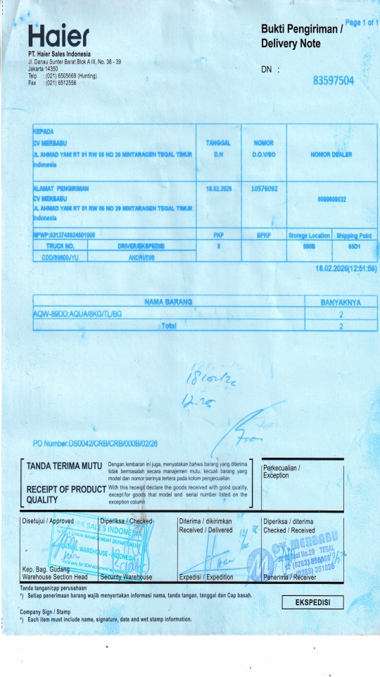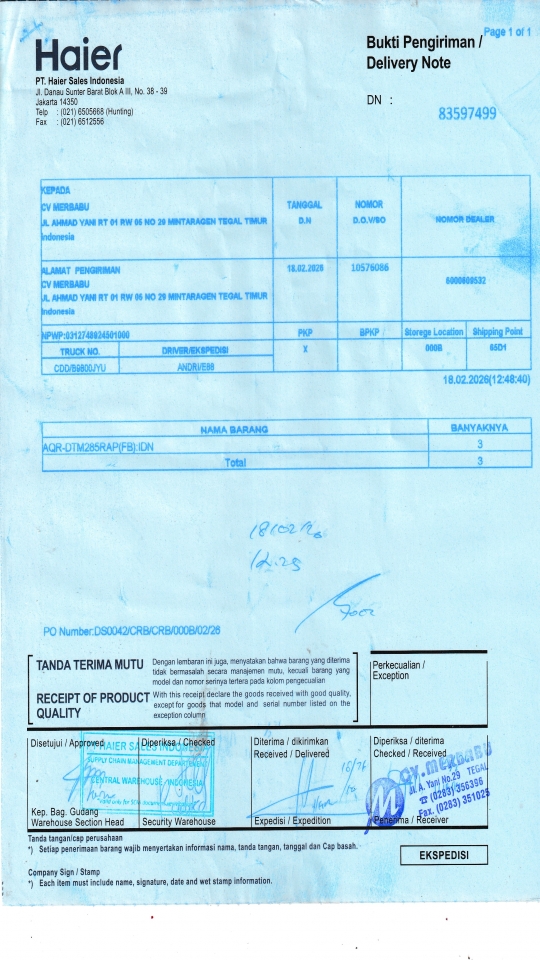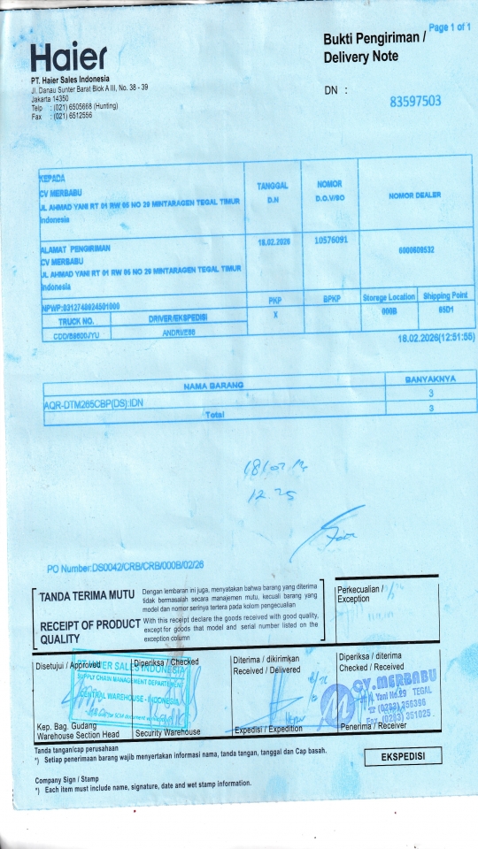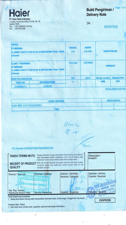 | Customer | PT. HAIER SALES INDONESIA |