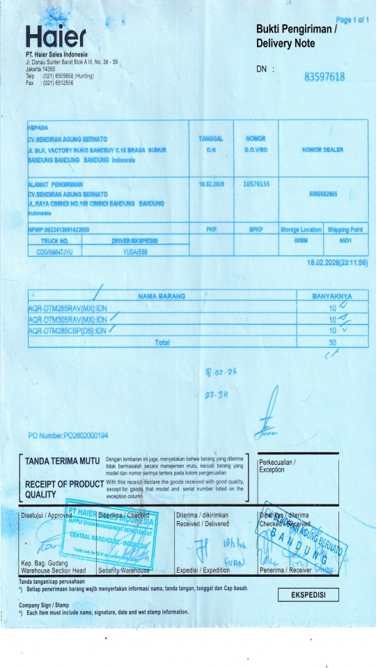 | Customer | PT. HAIER SALES INDONESIA |