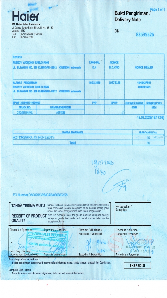 FREDDY YUDHONO SUSILO KING JL. SILIWANGI NO. 256 KUNINGAN 45512 CIREBON ID |