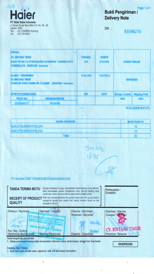| Customer | PT. HAIER SALES INDONESIA |