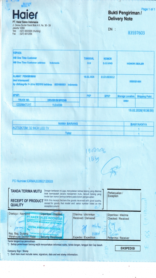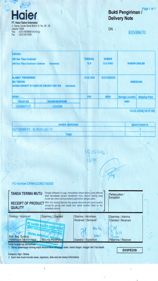 | Customer | PT. HAIER SALES INDONESIA |