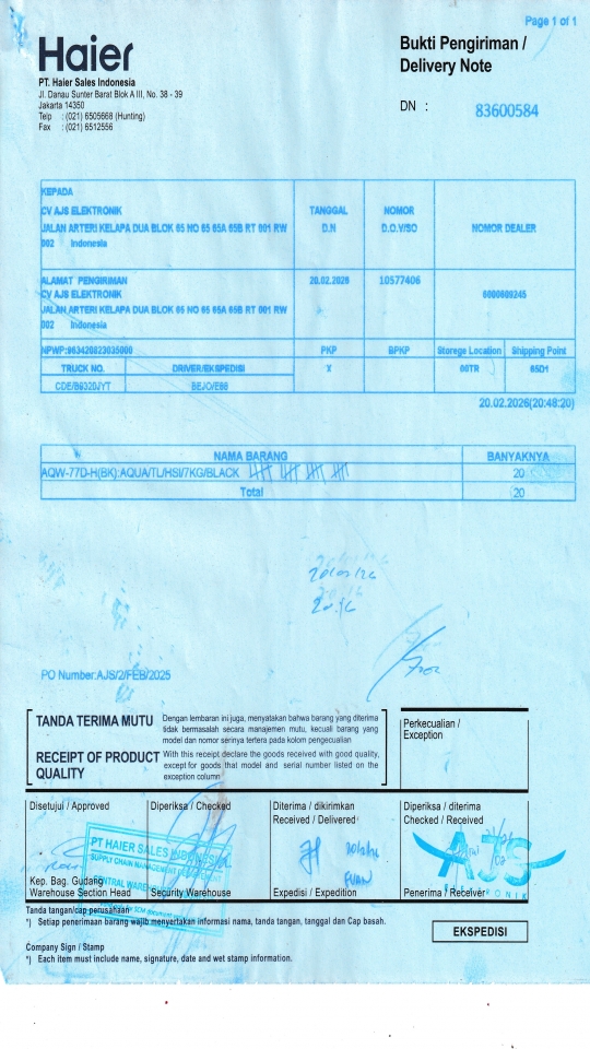 CV AJS ELEKTRONIK JALAN ARTERI KELAPA DUA BLOK 65 NO 65 65A 65B RT 001 RW 002 ID |